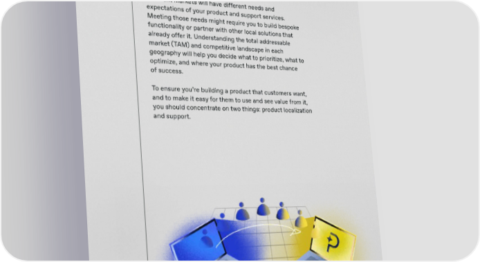 Selling SaaS Globally paddle.com Even with broad reach, SaaS businesses need strong market fit to see meaningful traction in new territories. Different markets will have different needs and expectations of your product and support services. Meeting those needs might require you to build bespoke functionality or partner with other local solutions that already offer it. Understanding the total addressable market (TAM) and competitive landscape in each geography will help you decide what to prioritize, what to optimize, and where your product has the best chance of success. To ensure you’re building a product that customers want, and to make it easy for them to use and see value from it, you should concentrate on two things: product localization and support. 27