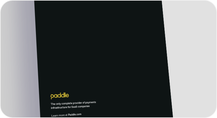 The only complete provider of payments infrastructure for SaaS companies Learn more at Paddle.com References 1 Paddle, The state of Saas growth 2 Paddle, 6 reasons for low payment acceptance 3 Paddle, Why payment processors aren’t 昀椀t for SaaS (Aug 2021) 4 Paddle, Introducing our new product updates to help you sell globally (Nov 2021) 5 Paddle, A conversation with Peter Nesbitt (Mar 2022) 6 Paddle, Selling SaaS internationally: When global becomes local (Jun 2021) 7 Developer.Paddle, Alipay 8 Paddle, How to build a go-to-market strategy 9 Paddle, The State of SaaS 2022: A Meta Report (Mar 2022) 10 Atomico, The State of European Tech 2021 (Dec 2021) 11 Tech Jury, Christo Petrov, 70+ Live Chat Statistics Your Business Needs in 2022 (Apr 2022) 12 Human Resources Director, Coann Labitoria, Salary vs employee bene昀椀ts: which is better to o昀昀er? (Nov 2021) 13 ADP.com, Resources, What is the cost of a PEO? 14 CSA Research